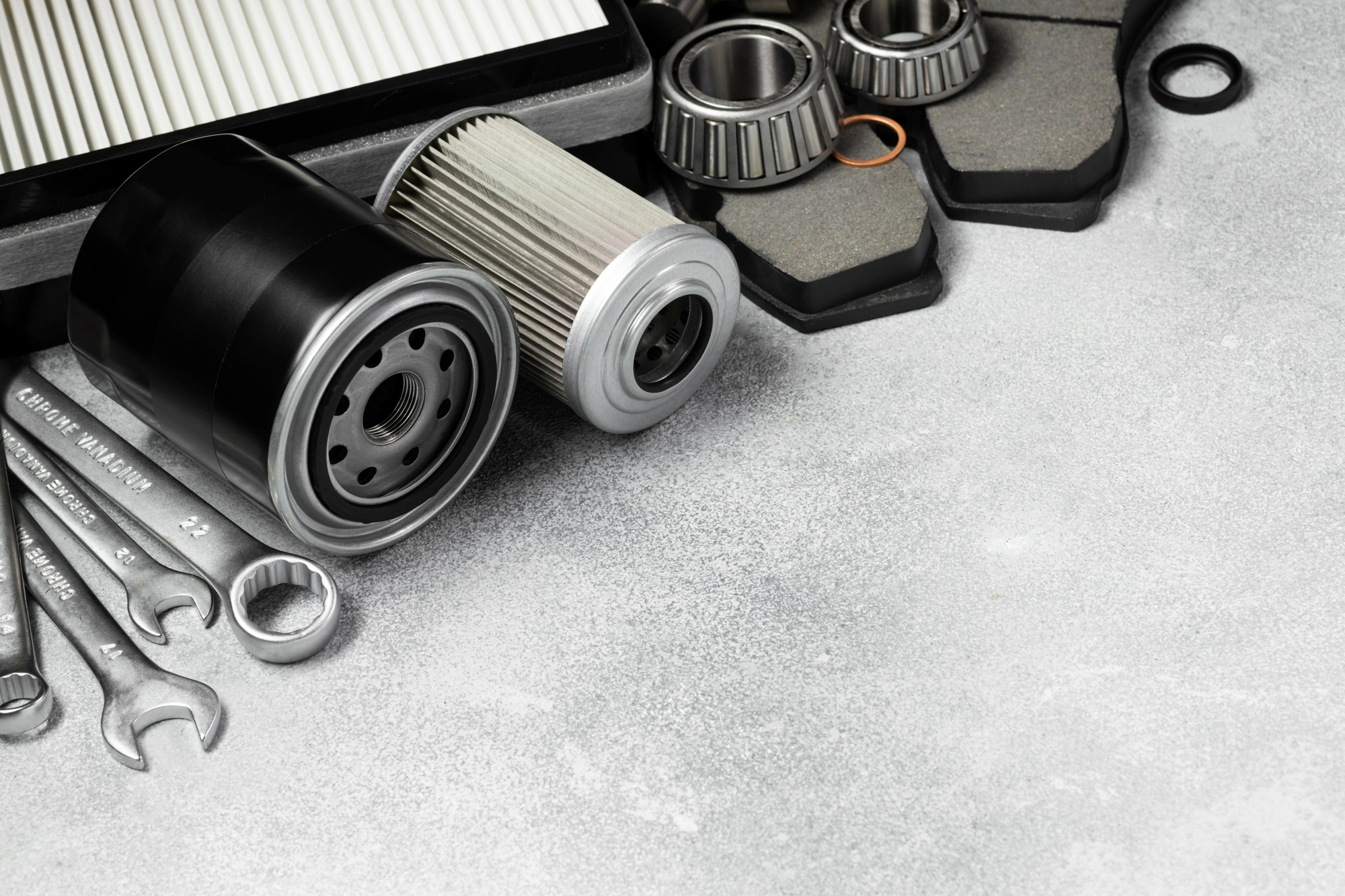 Масляные, воздушные и топливные фильтры, а также моторные и трансмиссионные масла.